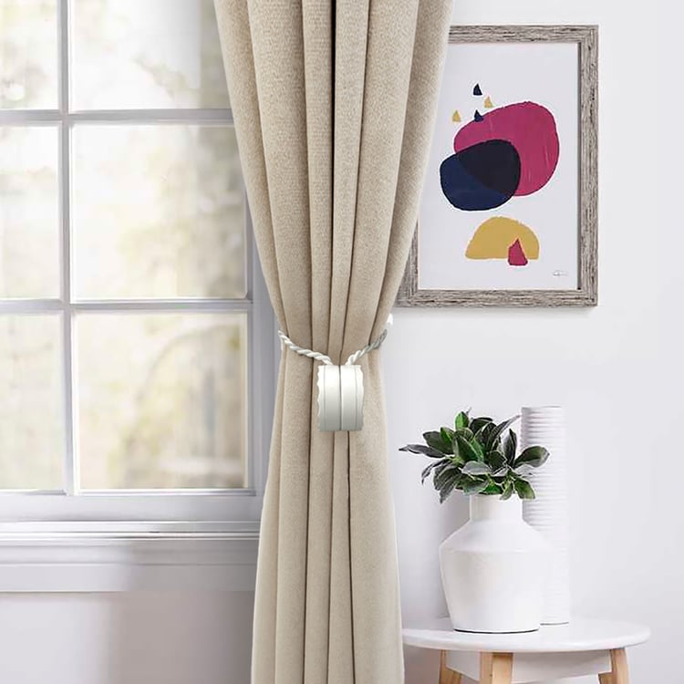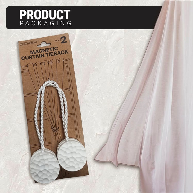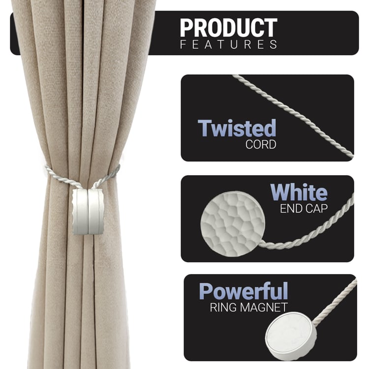 DECO WINDOW Wavelet Set of 2 Magnetic Rope Curtain Tiebacks - White