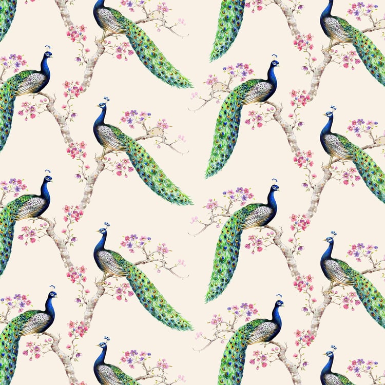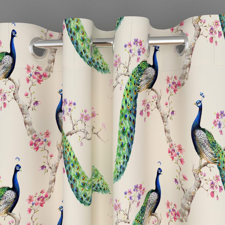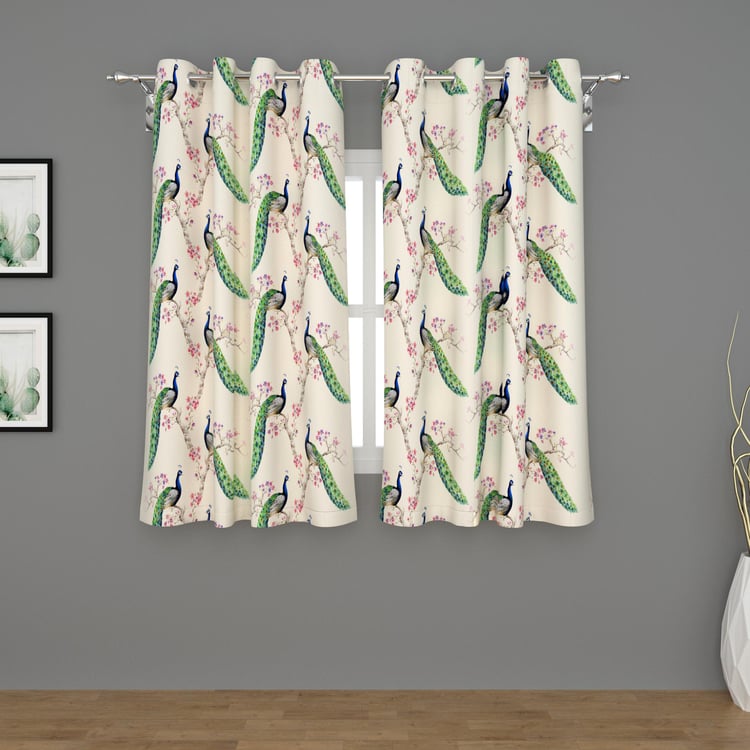 Moksha Peacock Print Window Curtain Pair - 120 x 160 cm