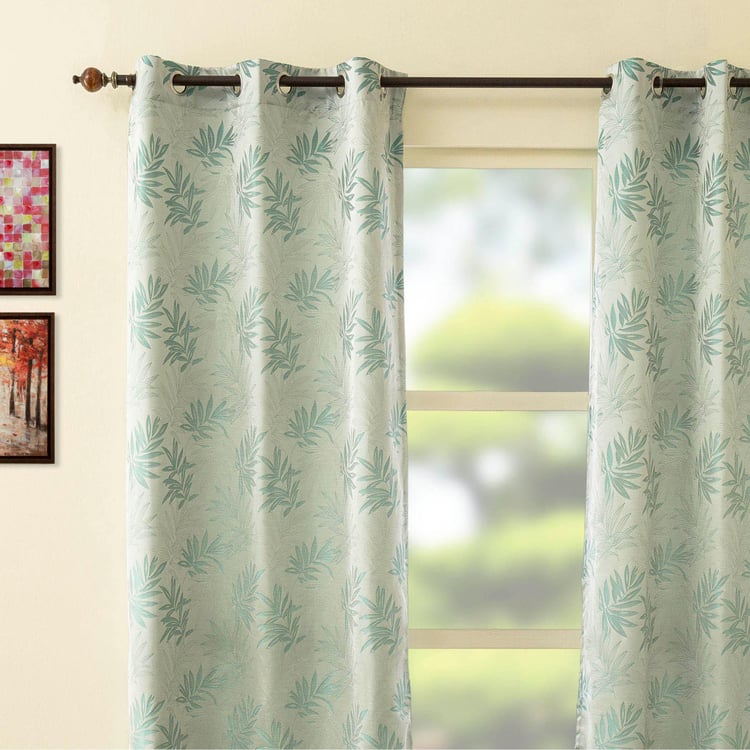 Sketch Green Jacquard Window Curtain- Set of 2- 110 x 160 cm