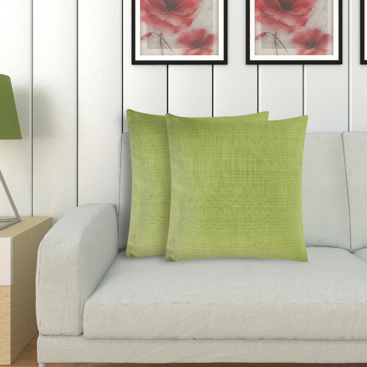 Colour Connect Solid Polyester Cushion Cover : 40 cm x 40 cm Green