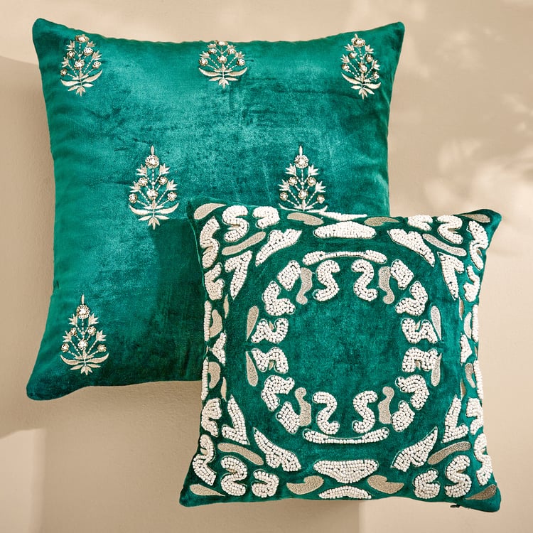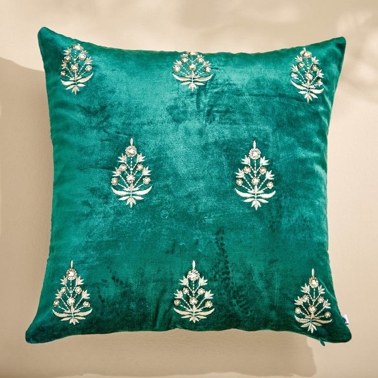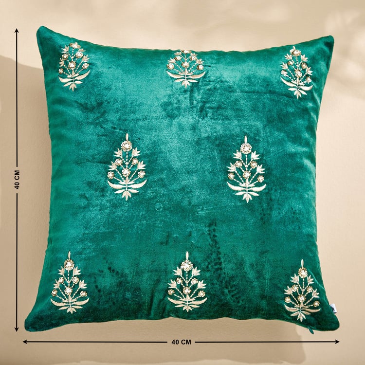 Extravagance Mughal Era Embroidered Cushion Cover - 40x40cm