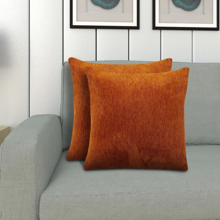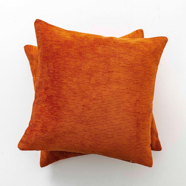Fiesta Velvet Orange Textured Cushion Cover- Set of 2 - 40 x 40 cm
