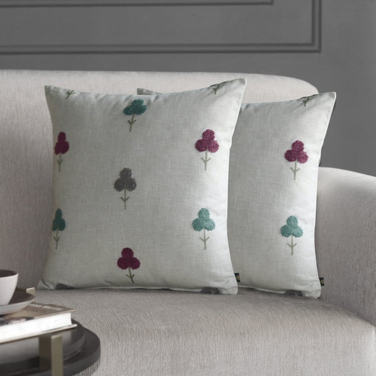 GM Meadow Prints Set of 2 Embroidered Cushion Covers - 40x40cm
