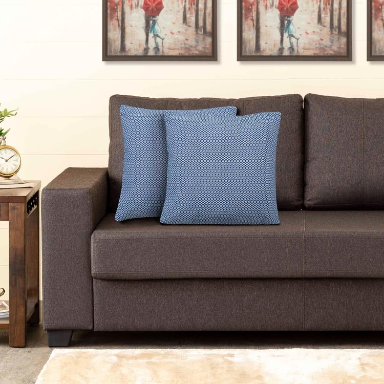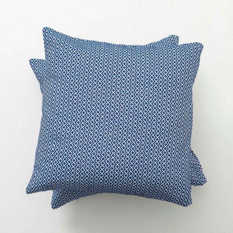 Garnet Blue Textured Cushion Cover- Cotton- Set of 2- 40 x 40 cm- Blue