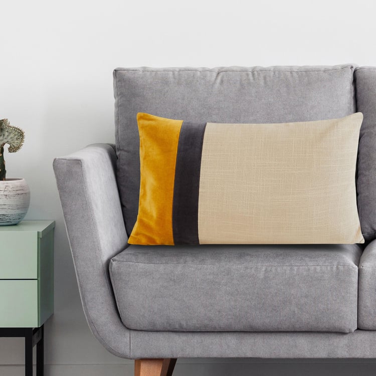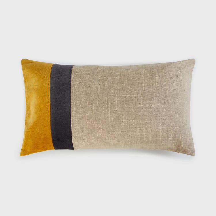Get The Look-Mix And Match Beige Colourblock Cotton Cushion Cover - 30x50cm