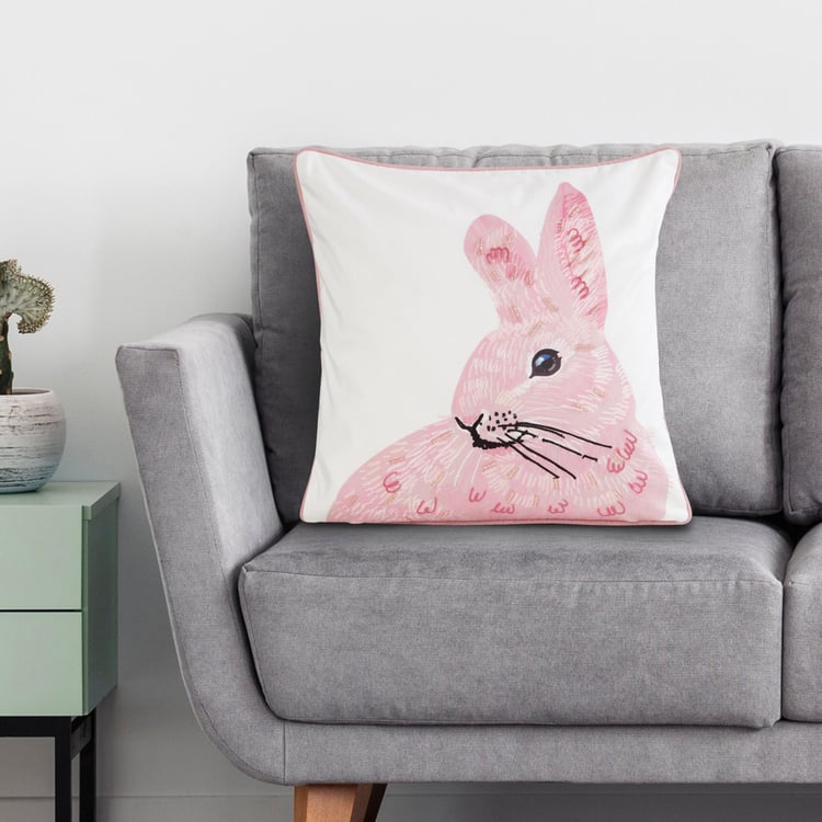 Get The Look-Monarch White Bunny Printed Cushion Cover - 40x40cm