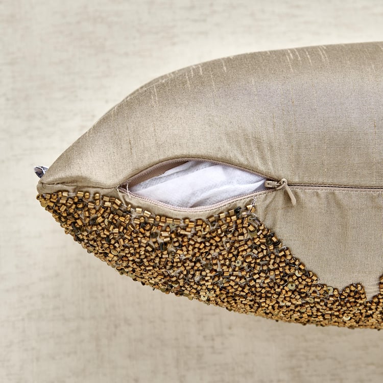 Add a touch of elegance to your space with this bead-embellished cushion cover. Crafted from quality poly dupion fabric, its intricate detailing brings texture and sparkle to your home decor.