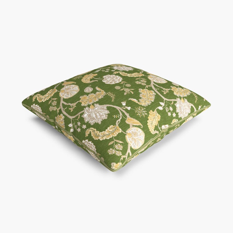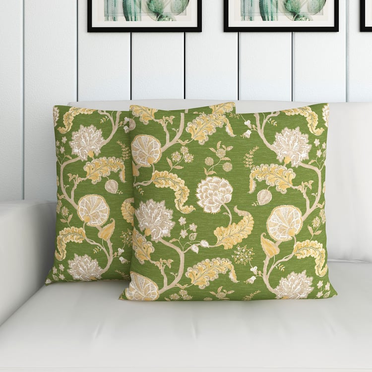 Healthy Living Green Embroidered Cushion Cover- Set of 2