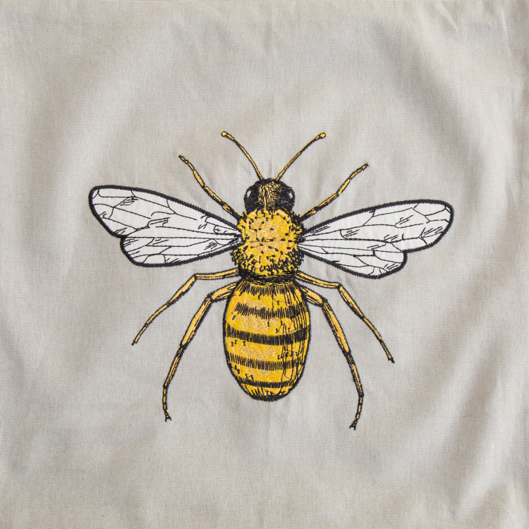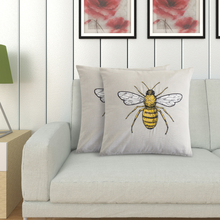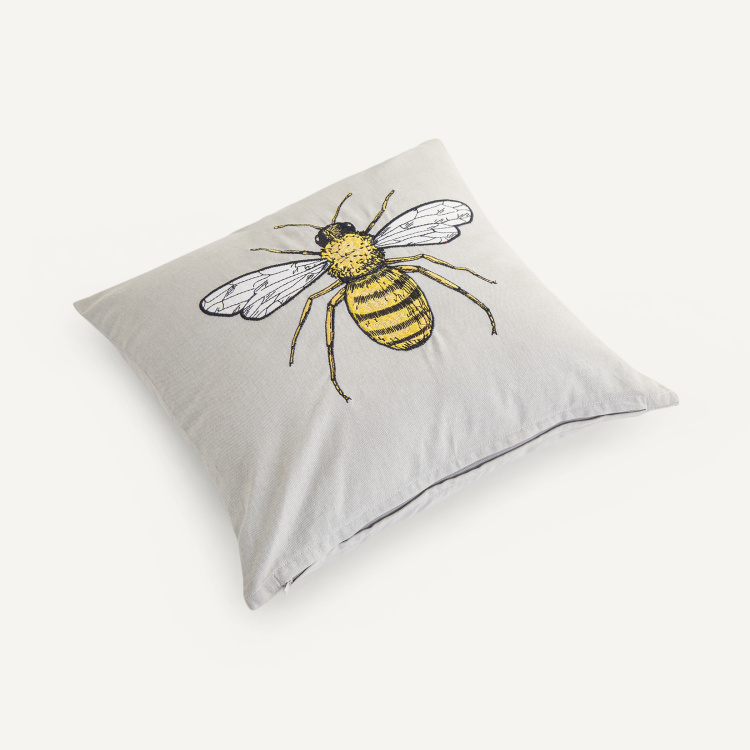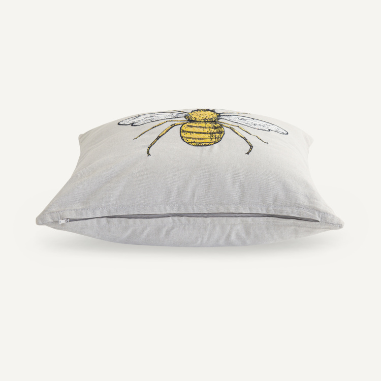 Honey Bee Embroidered Cotton Cushion Covers : 40 cm x 40 cm Grey