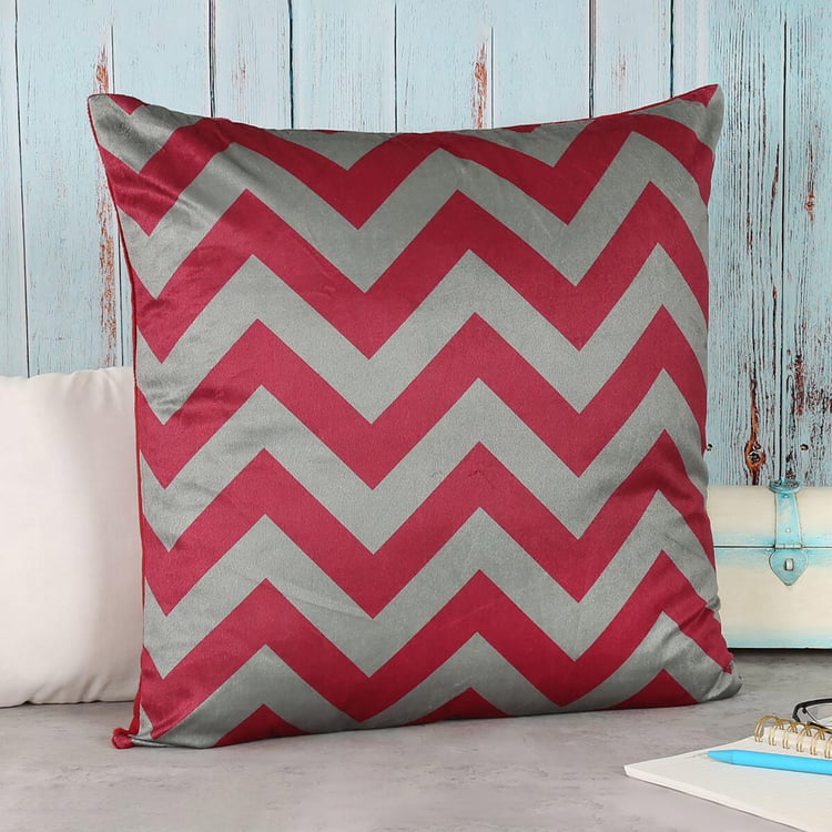 INDIA CIRCUS Carmine Chevron Printed Cushion Cover - 41x41cm