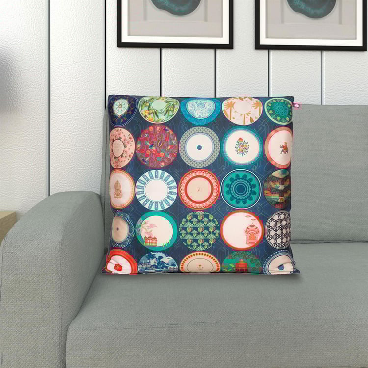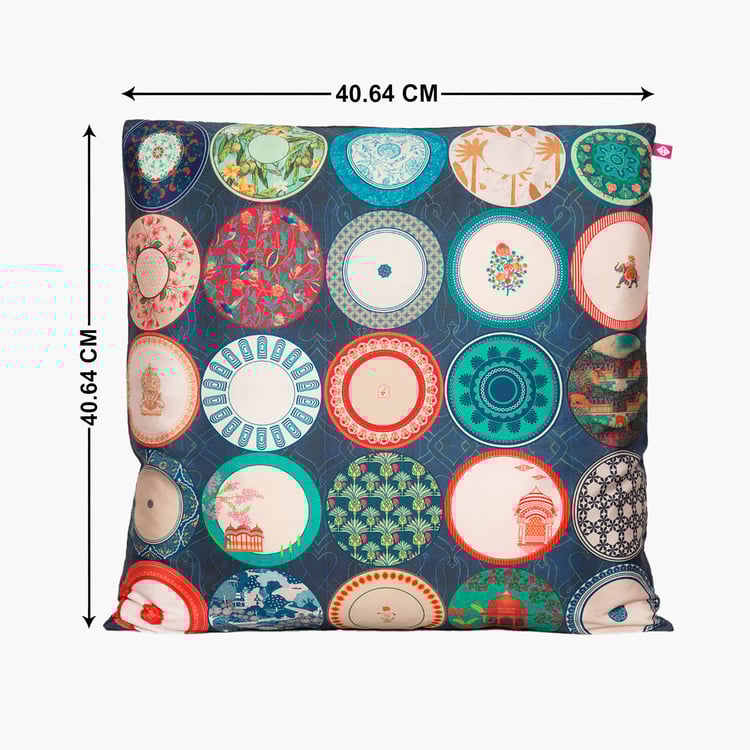 INDIA CIRCUS Platter Portrayal Cushion Cover - 40.6 x 40.6 cm
