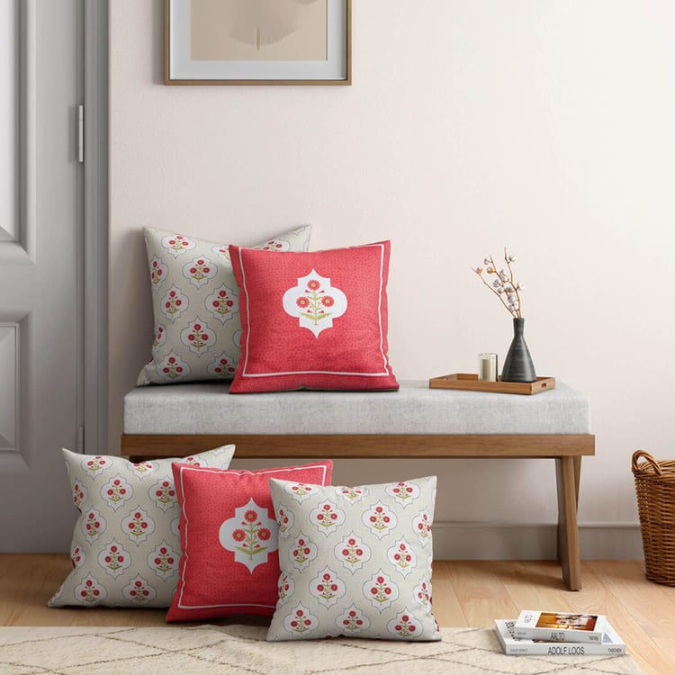 INDIA CIRCUS Poppy Flower Printed Set of 5 Cushion Covers - 46x46cm