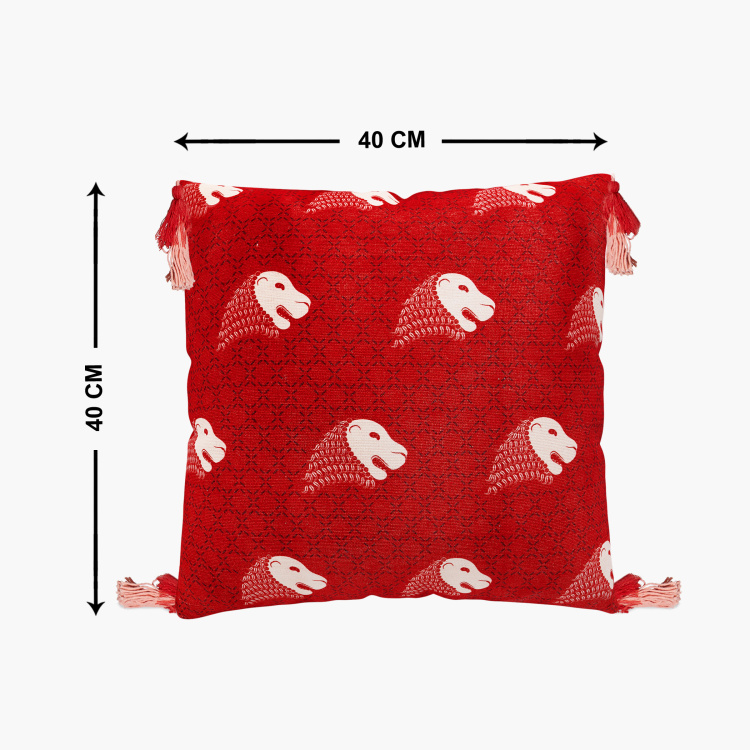 India Inspired Embellished Cushion Covers - Single Pc - 40 cm X 40 cm - Polyester - 40 cmL X 40 cmW - Red