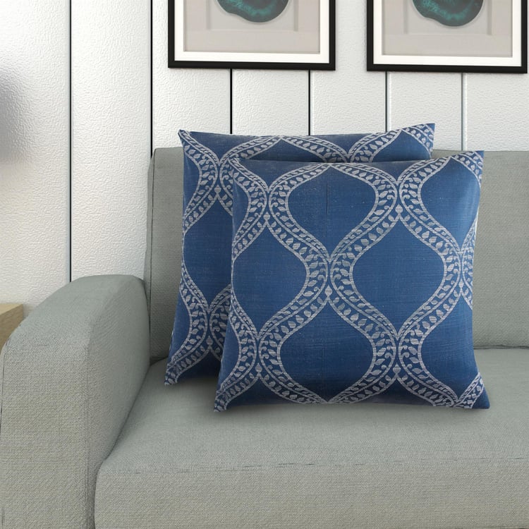 Jade Blue Printed Cushion Cover - 40x40cm - Set of 2