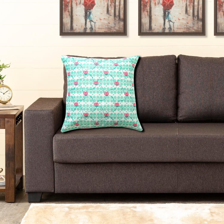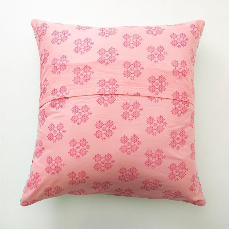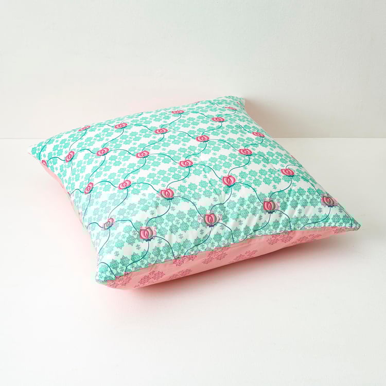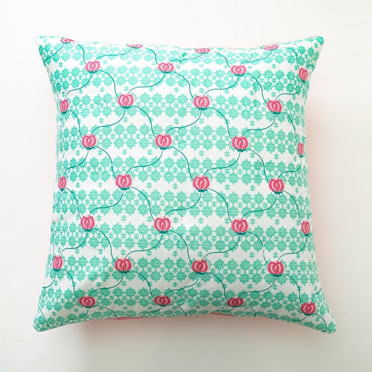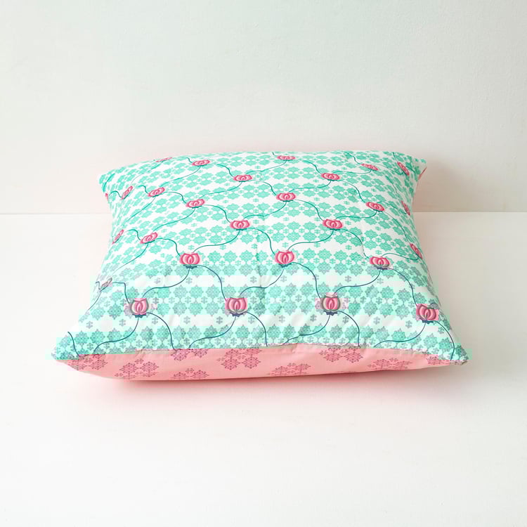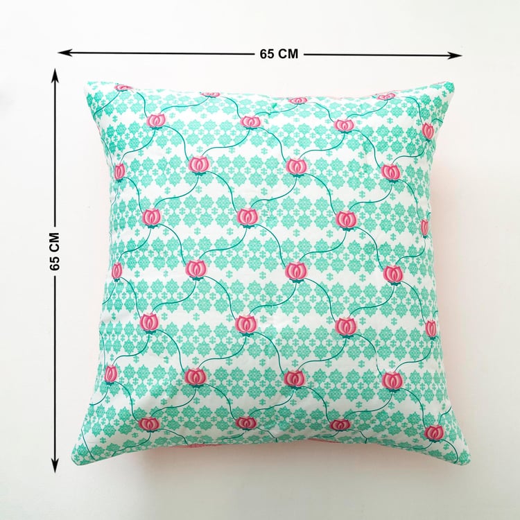 Kalhara Teal Printed Euro Sham Cotton- 65x65 Cms