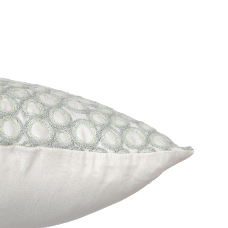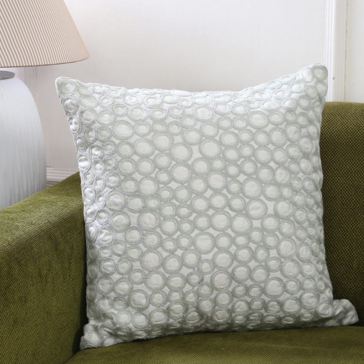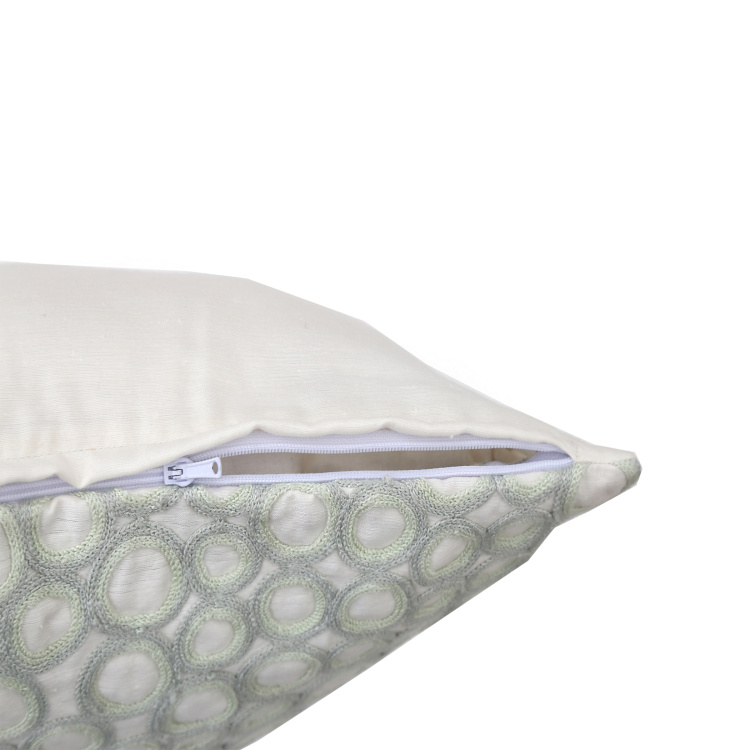 With stacks of closely packed circular embroidery keeping your posh look lit-up, this pillow cover promises to add a dash of class to your furniture collection.