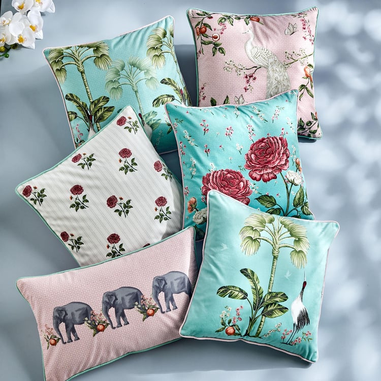 Create a harmonious balance of chic and modern aesthetics with this cushion cover in your living room. It flaunts a printed surface, embroidered detail, square shape, and premium quality material.