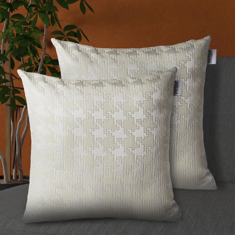 PORTICO Lotus Beige Printed Cushion Covers - 40 x 40 cm - Set Of 2