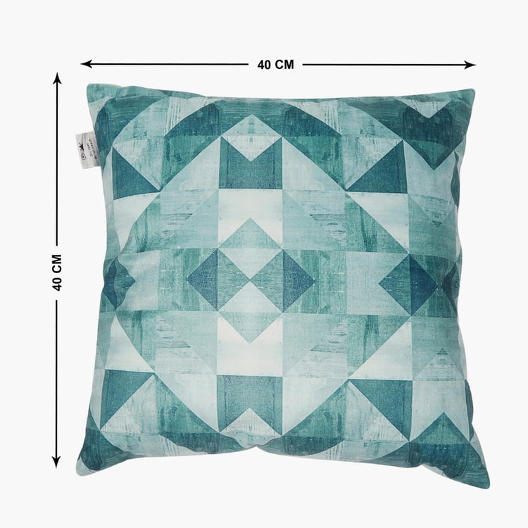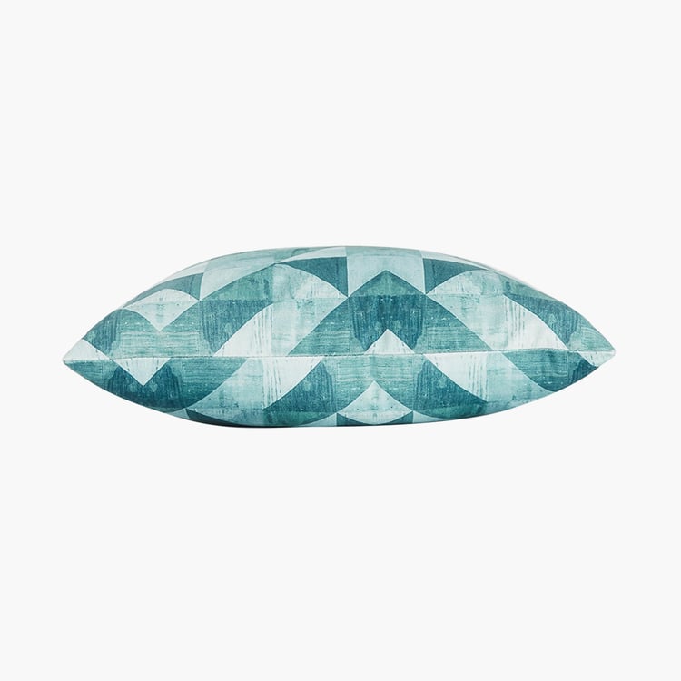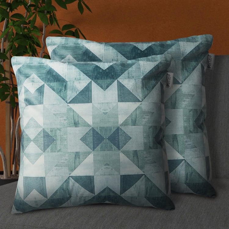 PORTICO Lotus Teal Geometric Print Square Cushion Cover - 40x40cm - Set of 2
