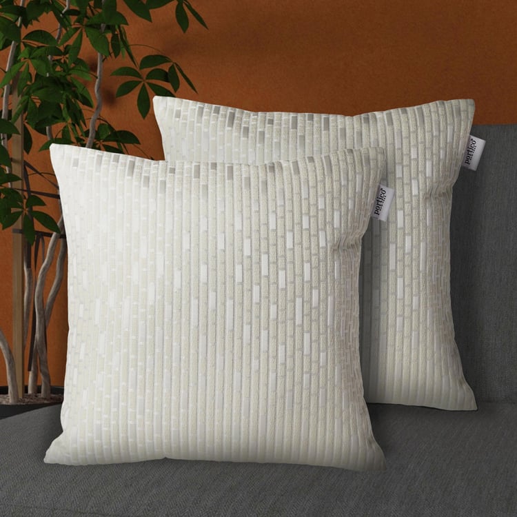 PORTICO Lotus White Printed Cushion Covers - 40x40cm - Set of 2