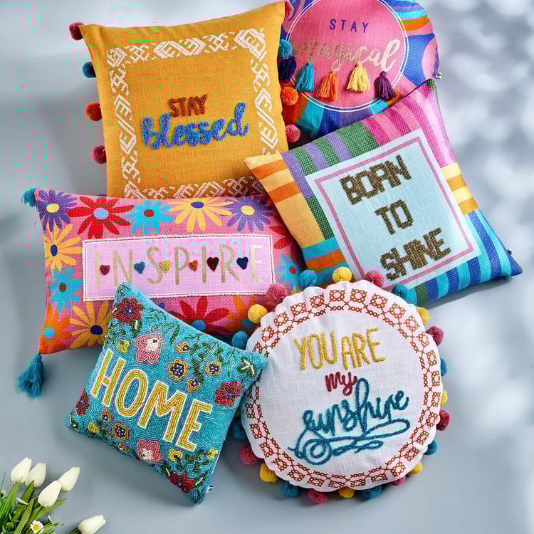 Brighten up your living room with this filled cushion. It flaunts an embellished surface, square shape, and premium quality material.