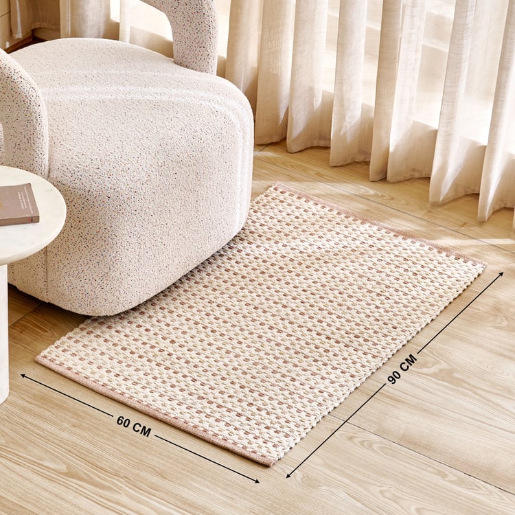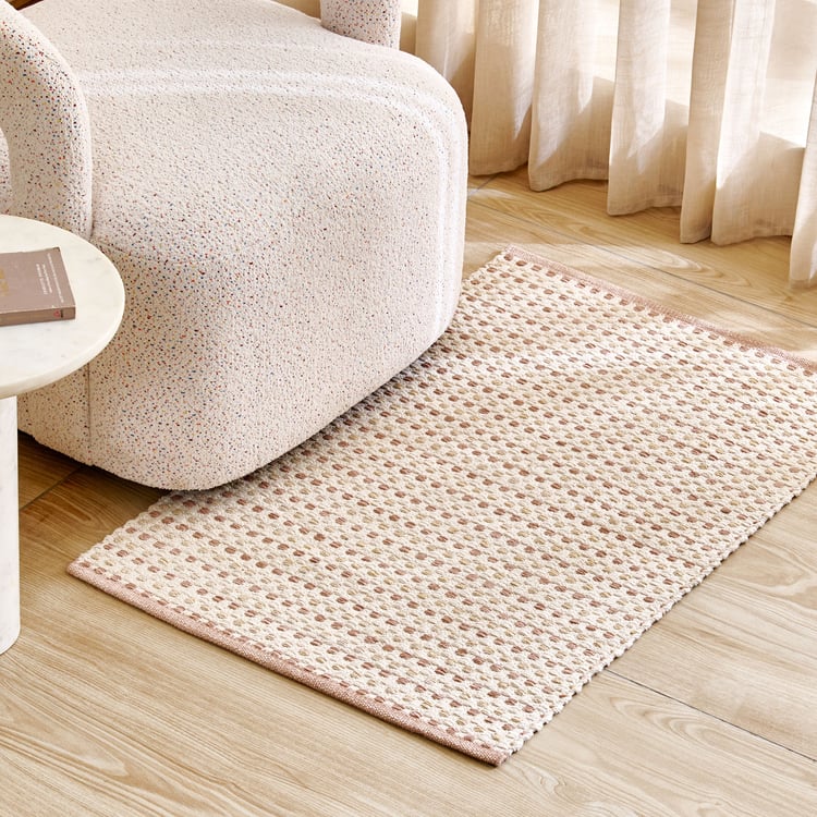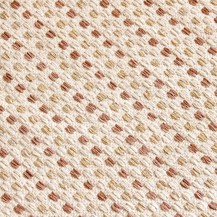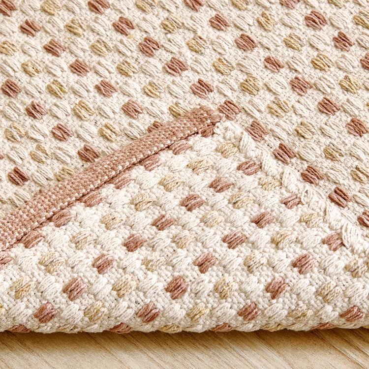 Bring style and functionality to your home with this versatile woven dhurrie, perfect for high-traffic areas. Crafted from durable cotton, it is soft underfoot, easy to maintain, and designed to withstand everyday use. Whether placed in the kitchen, bathroom, entryway, or living space, it adds a unique and inviting touch to your decor.
