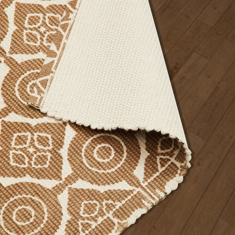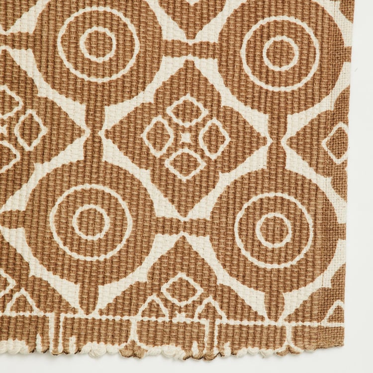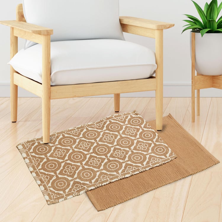 An easy way to protect your floor and enhance your decor, this pair of dhurries fit into a range of interiors and colour schemes. It is made of cotton blend fabric with a flat woven design. Ideal for indoor use, it includes a solid-tone dhurrie and a dhurrie with attractive prints.