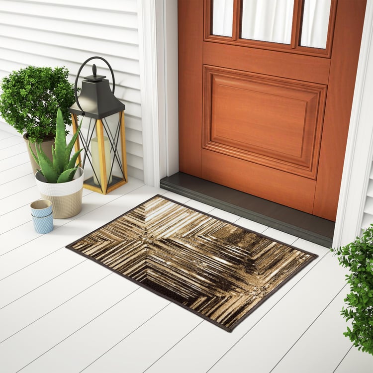 Spaces Small Size Unwinders Brown Striped Nylon Doormat - 38X57Cm