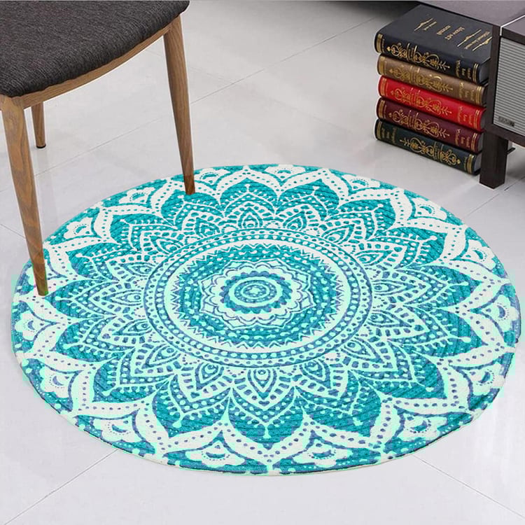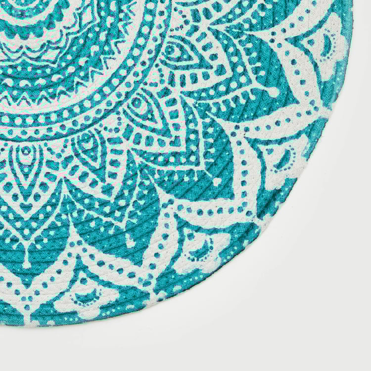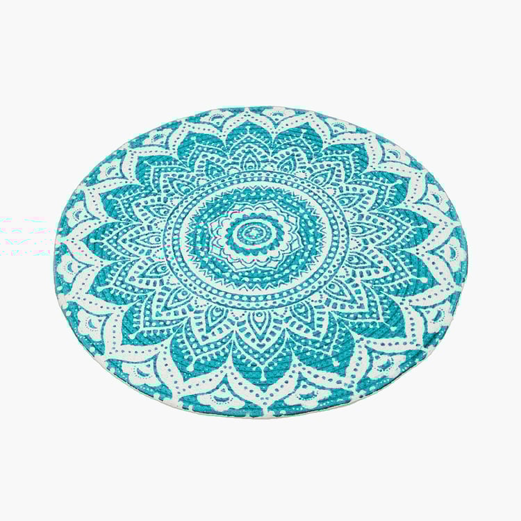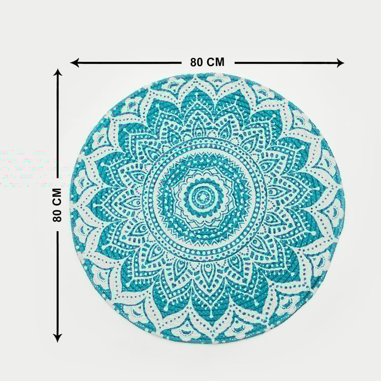 Zodiac Ring Blue Printed Cotton Round Braided Rug - 80cm