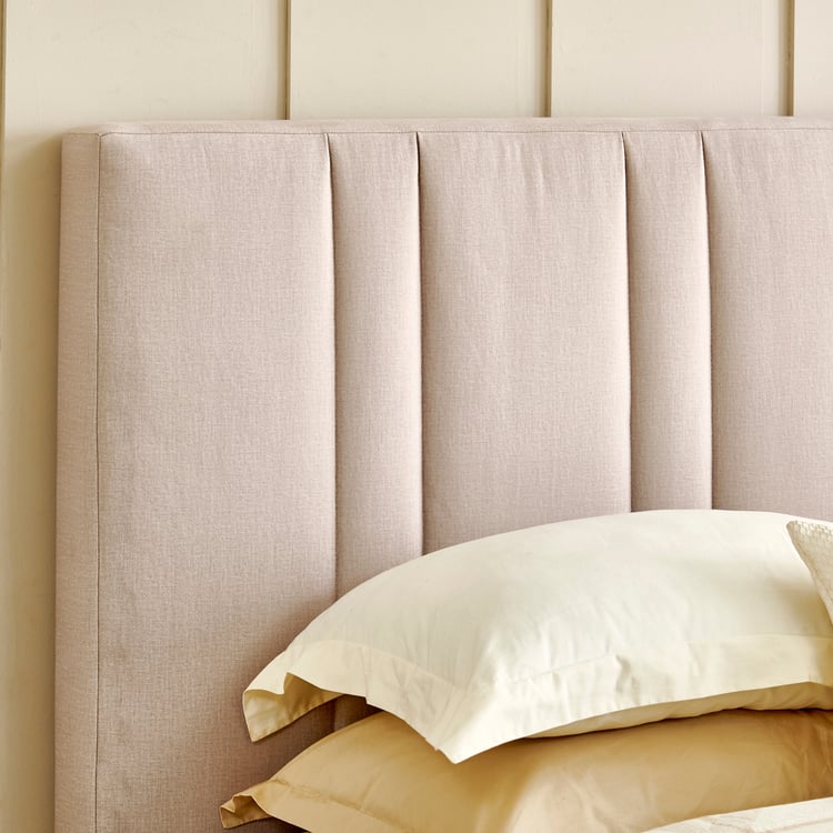 Elevate your bedroom with this king bed, offering comfort and style. Built with a termite-and borer-resistant engineered wood frame, it has a protective coating that adds scratch, dent, moisture, heat, and stain resistance. The panel-style headboard is upholstered in a breathable, moisture-wicking, elastic, and fade-resistant high-performance fabric. Its height is designed for comfortable sitting and lounging, making it ideal for reading or watching TV.