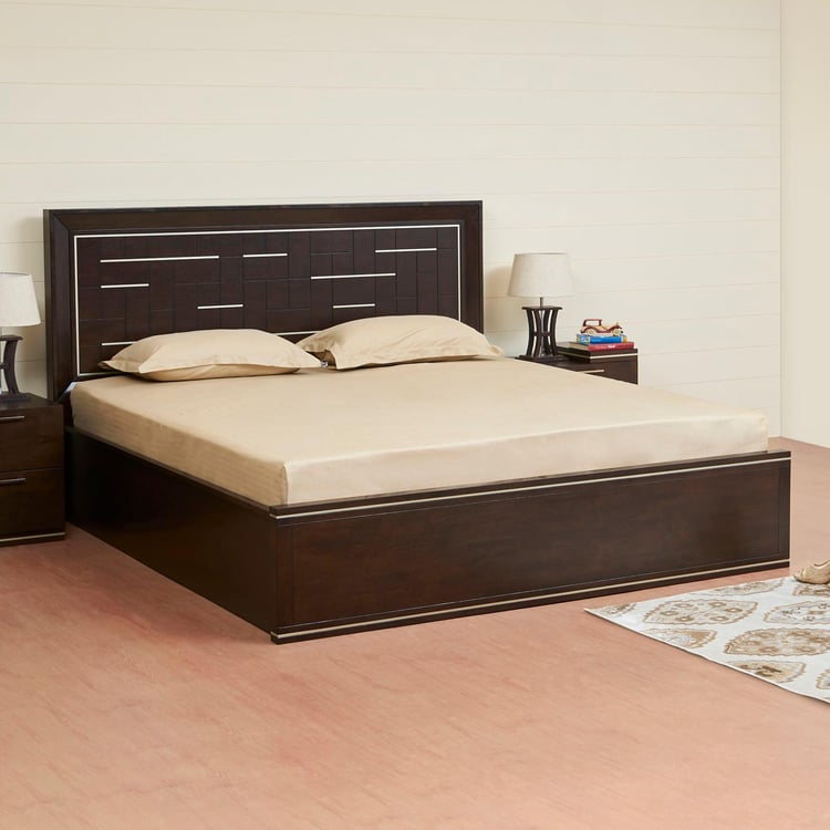 Crafted from premium quality rubberwood, this King-size bed has been designed to serve as the perfect addition to the plush and elegant ambience of your home. The veneer finish adds to the overall look.