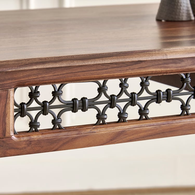 Gather for a homely banquet with this 4-seater dining table crafted from kiln-dried, chemically treated sheesham wood for indoor safety. High-gauge, non-magnetic mild steel ensures superior durability and strong load-bearing support.