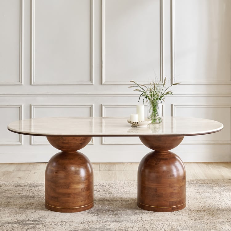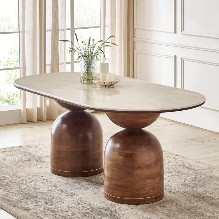 Nuqta Marble Top 6-Seater Dining Table - Brown
