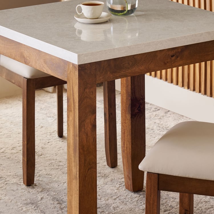 Giza Composite Marble Top 2-Seater Dining Set with Chairs - Grey