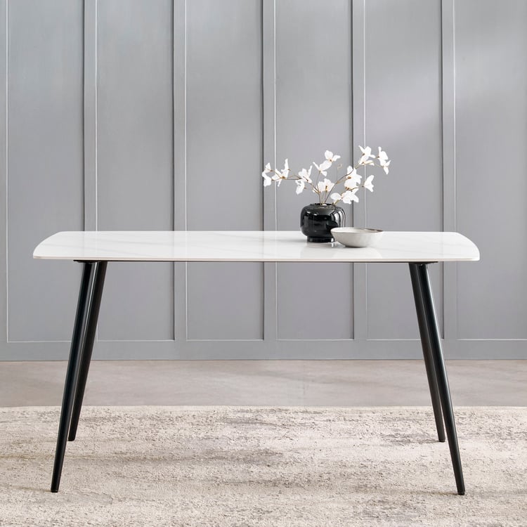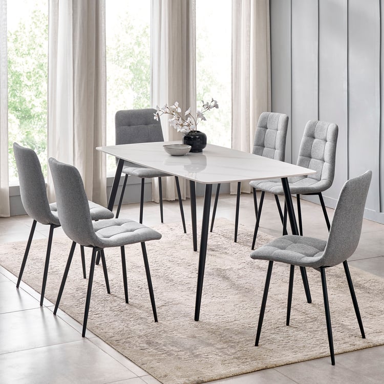Helios Leo Sintered Stone 6-Seater Dining Set with Chairs - White