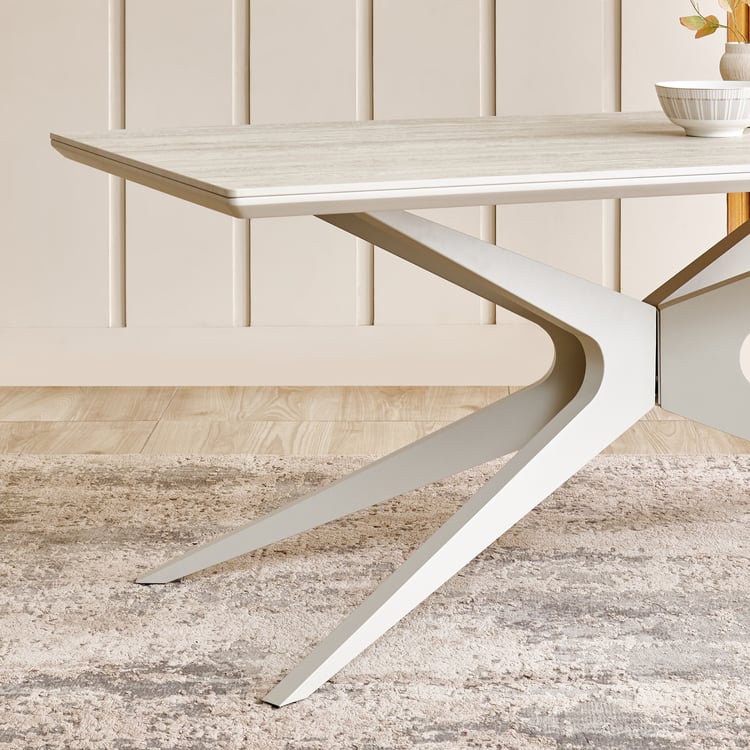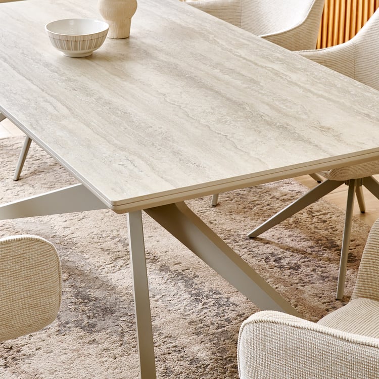 Ivory Ceramic Top 6-Seater Dining Set with Chairs - Beige