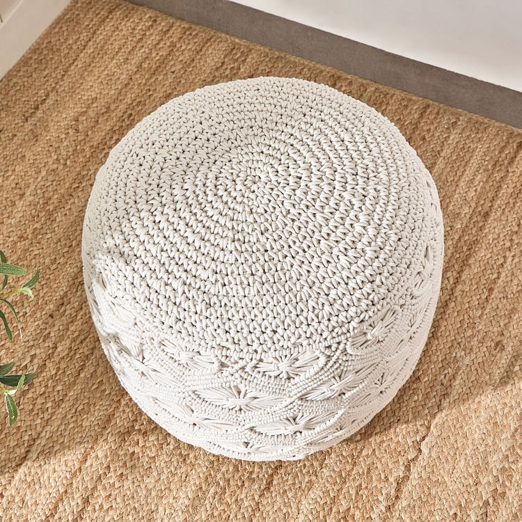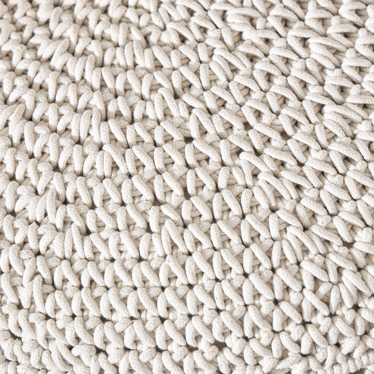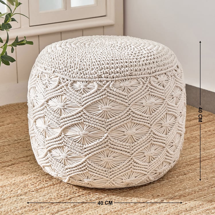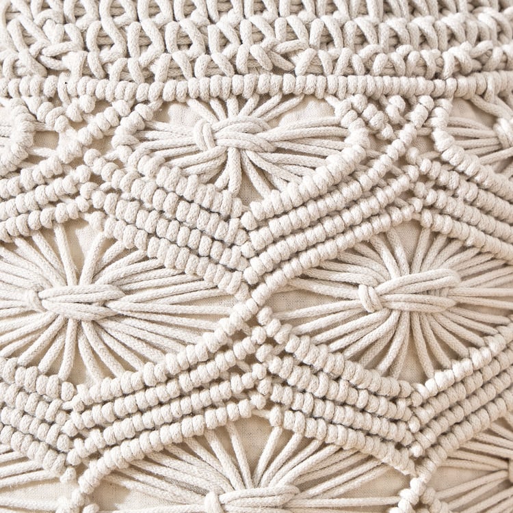 Bohemia Haven Cotton Macrame Pouffe - Beige