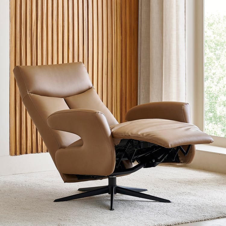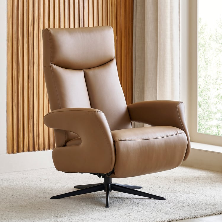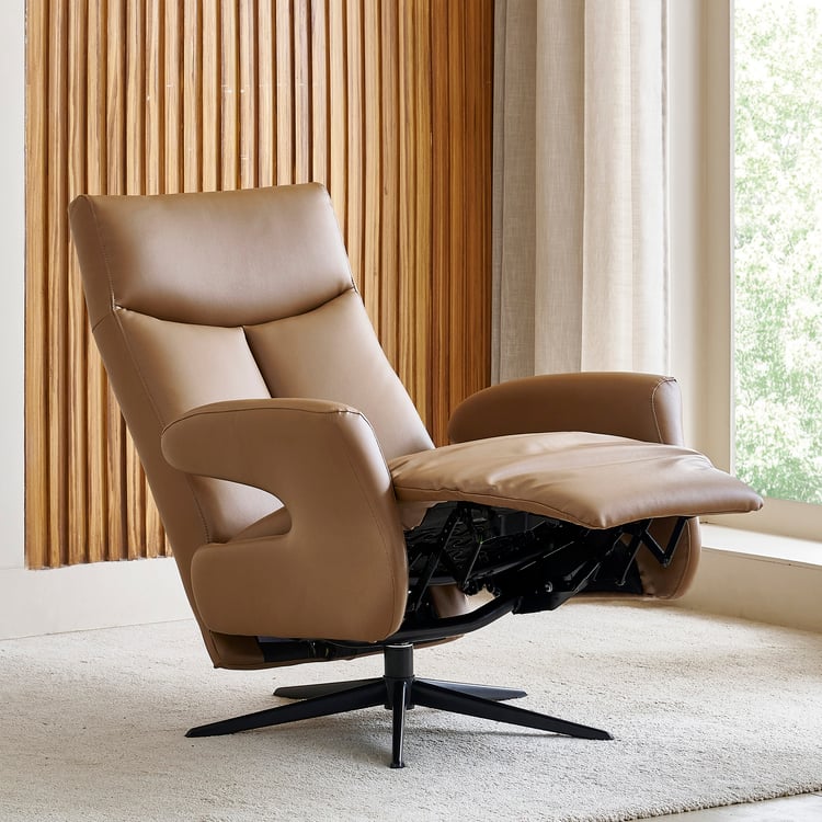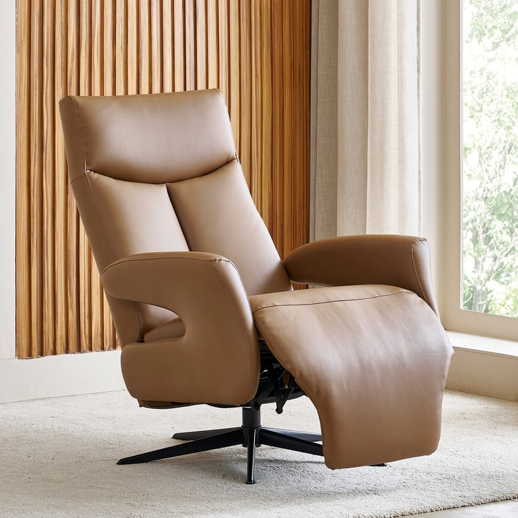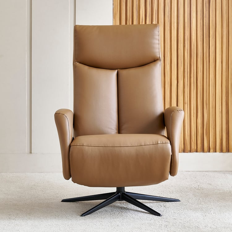 Damian Faux Leather 1-Seater Swivel Manual Recliner - Brown