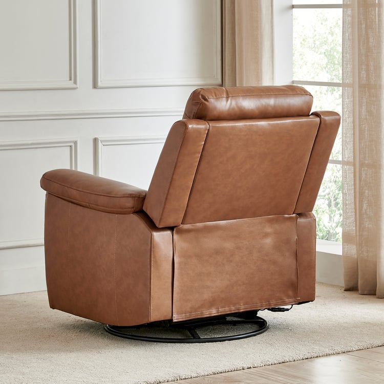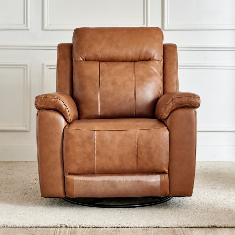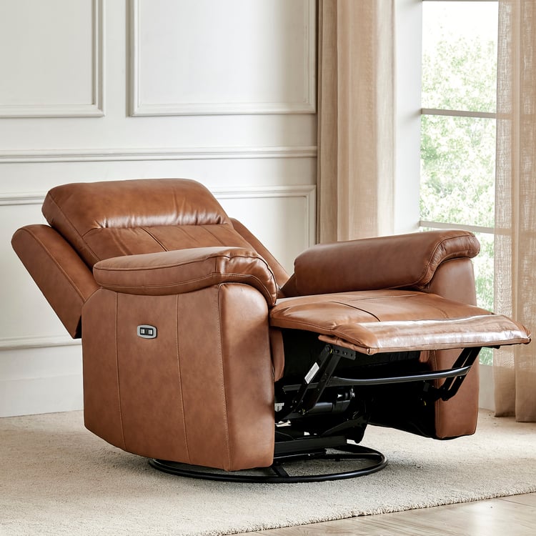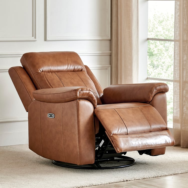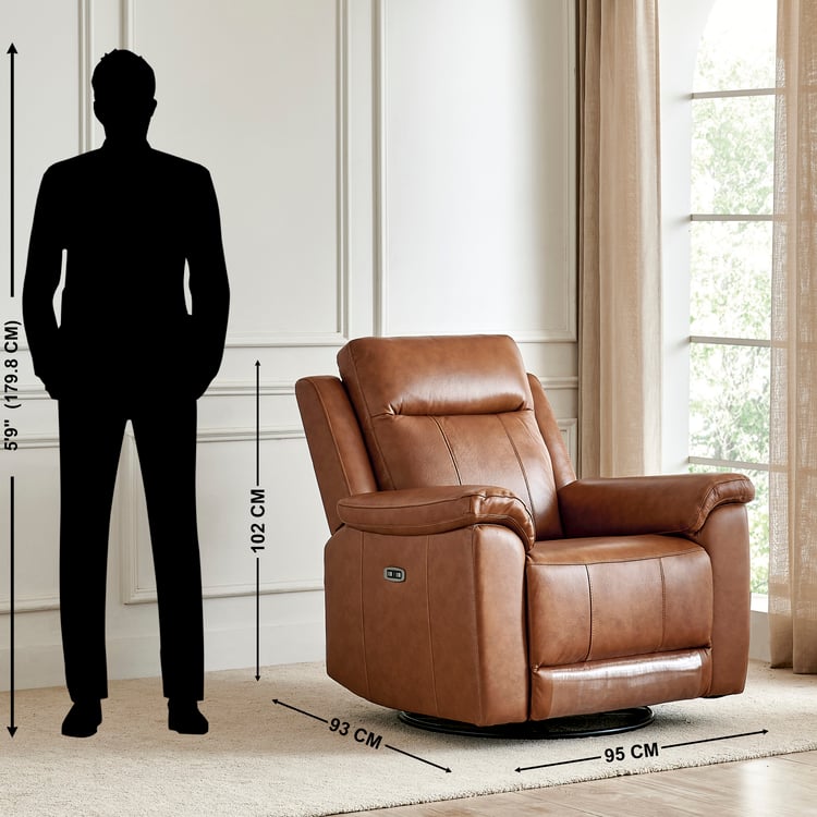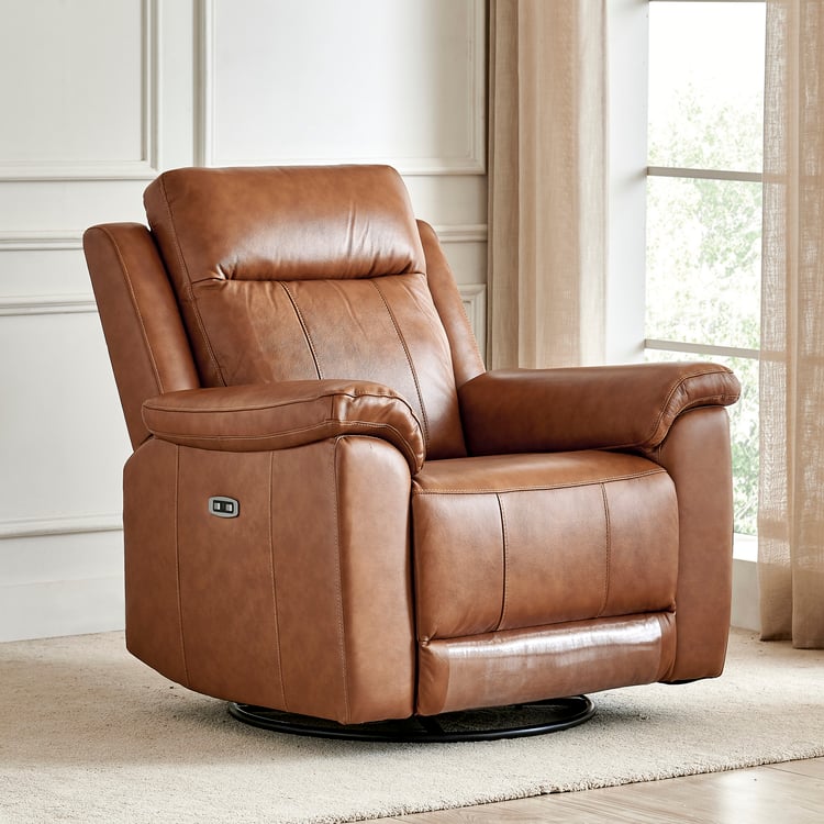 Nevil Half Leather 1-Seater Swivel Electric Recliner - Tan