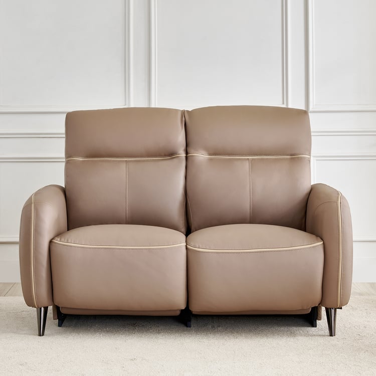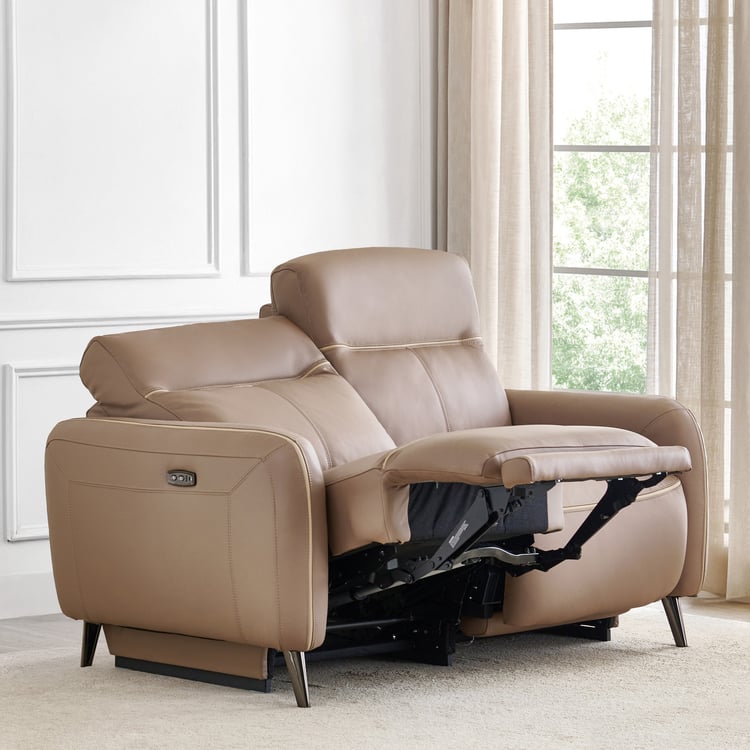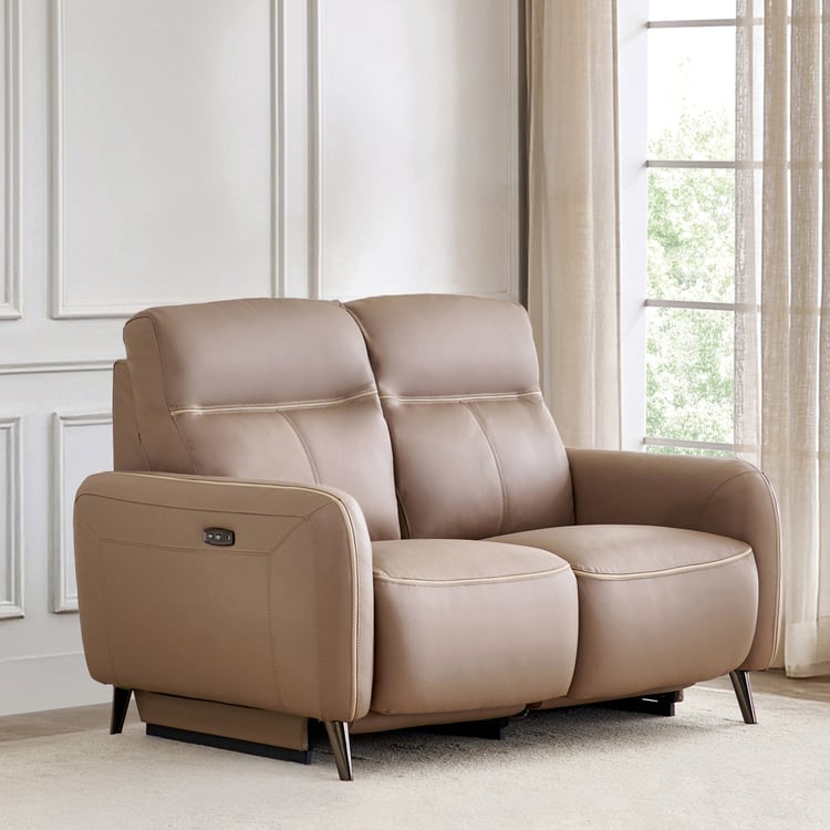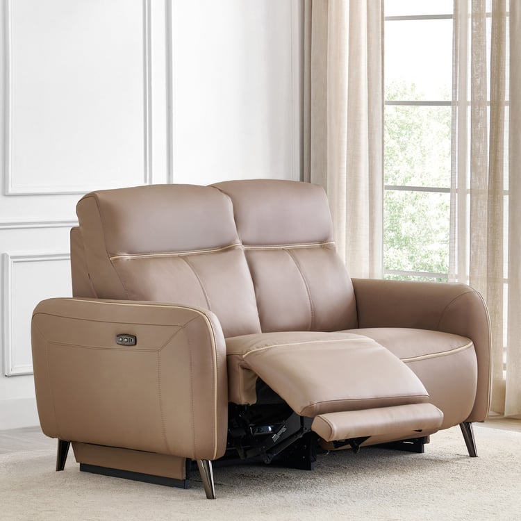Skyros Half Leather 2-Seater Electric Recliner - Brown