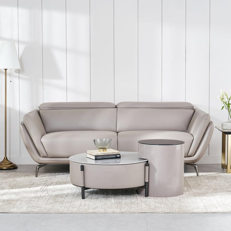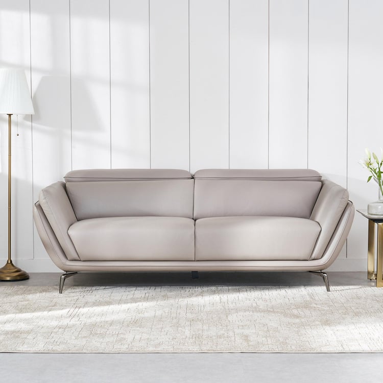 Marcello Half Leather 3-Seater Sofa - Beige