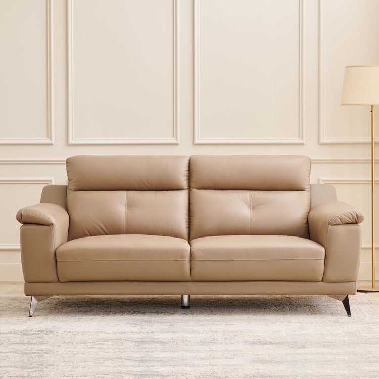 Martin Half Leather 3-Seater Sofa - Beige