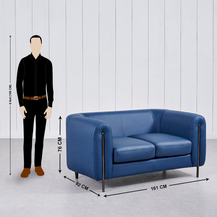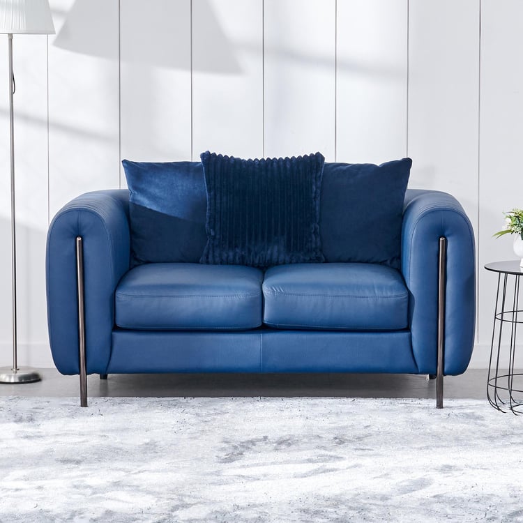 Sapphire Half Leather 2-Seater Sofa with Cushions - Blue