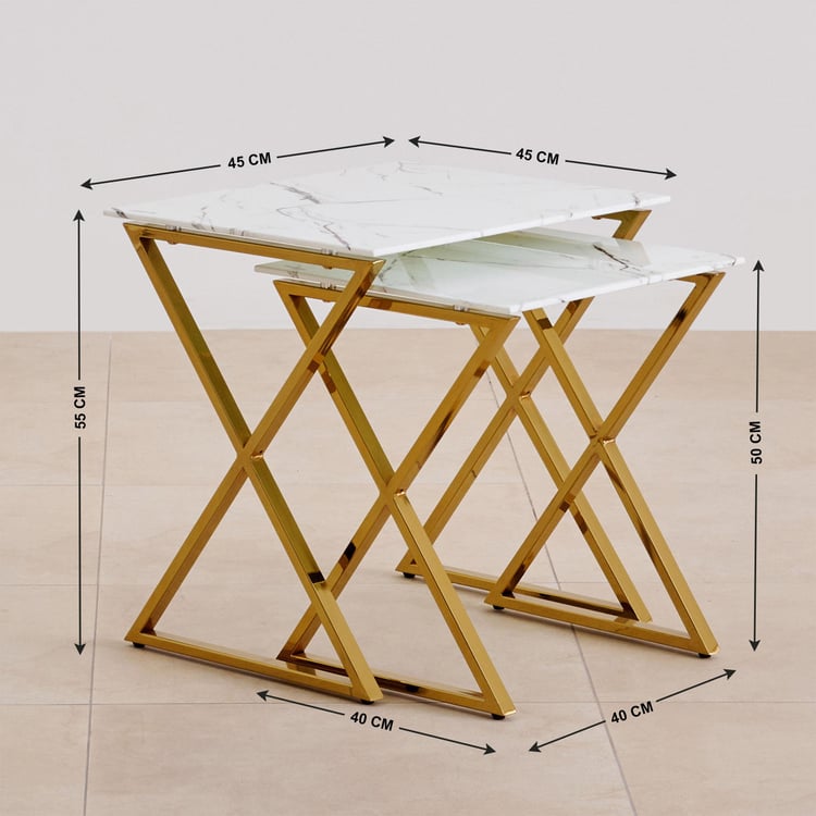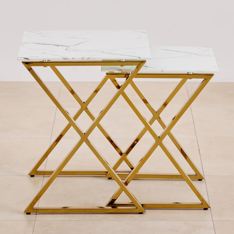 Bianca Tempered Glass Top Nest of 2 Tables - Gold