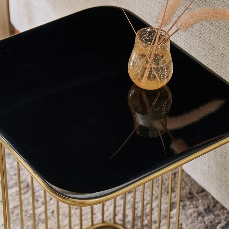 Where durability meets elegance, this accent table features a sleek 5mm tempered black glass top along with a sturdy electroplated metal base adds luxury and strength. Perfect for elevating your living room decor while serving as a stylish platform for your accessories.