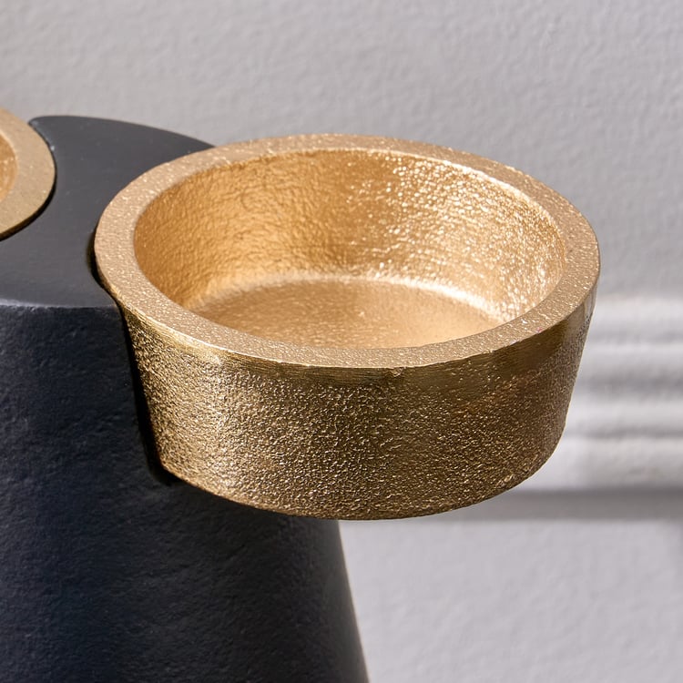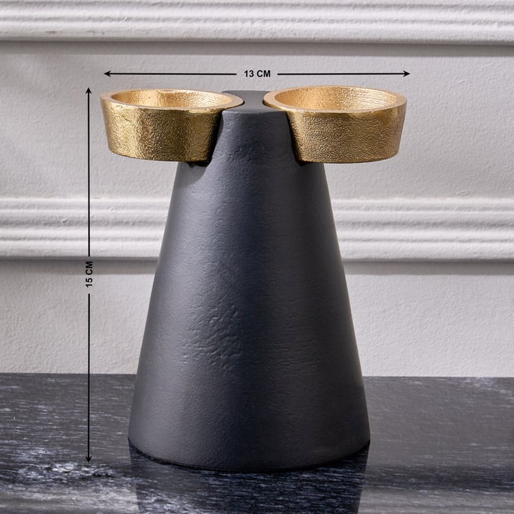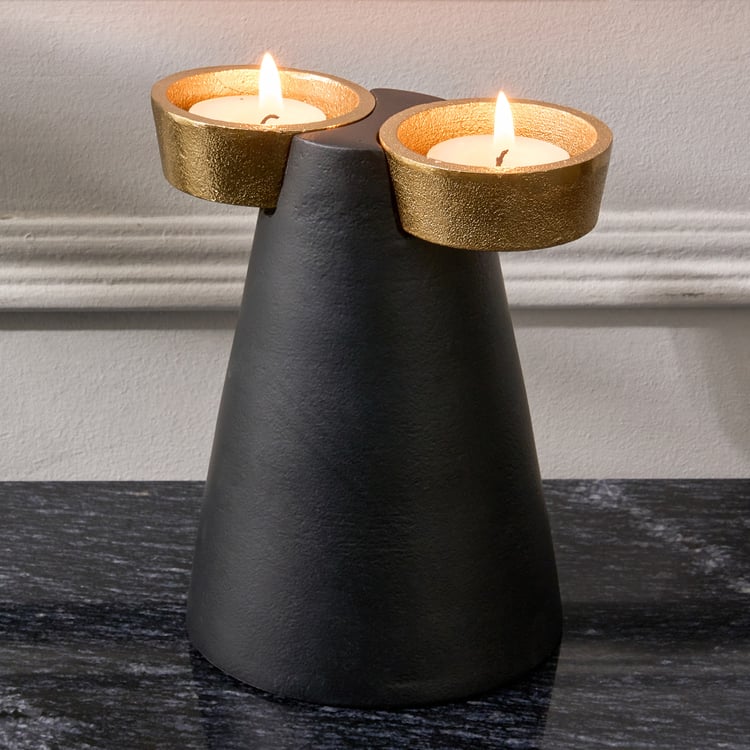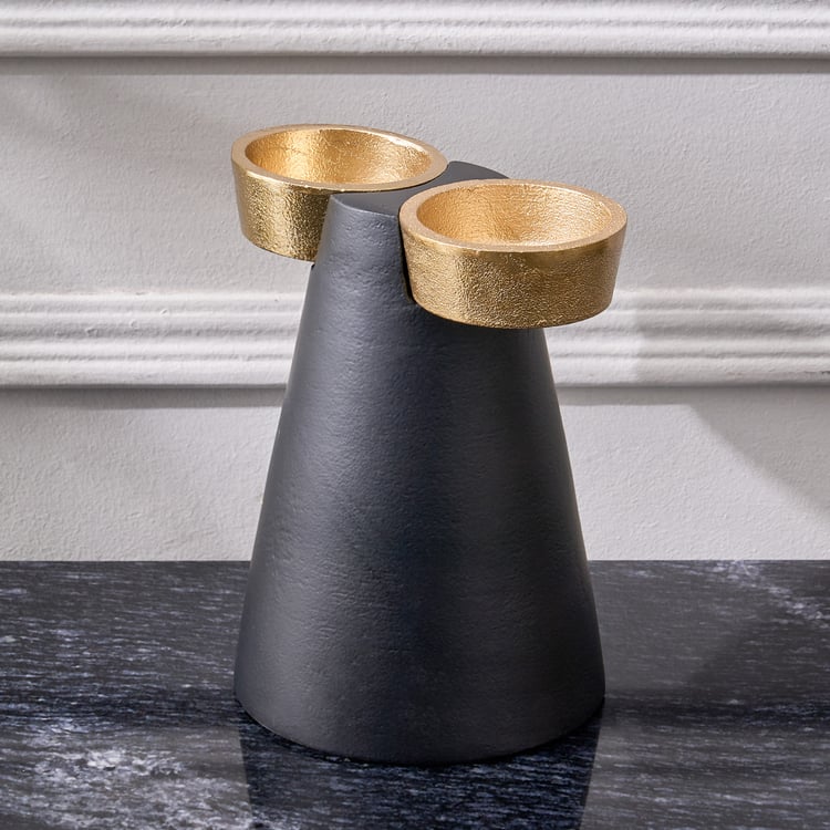 Create a warm glow with this aluminium T-light holder. Featuring a sleek, modern design, it adds a touch of elegance to your decor, perfect for cosy evenings or festive occasions.