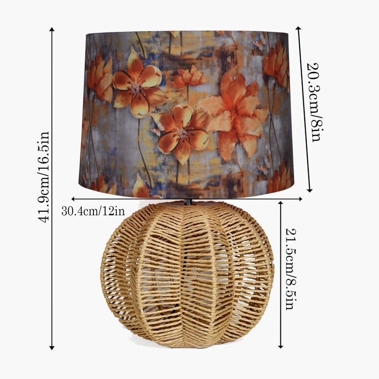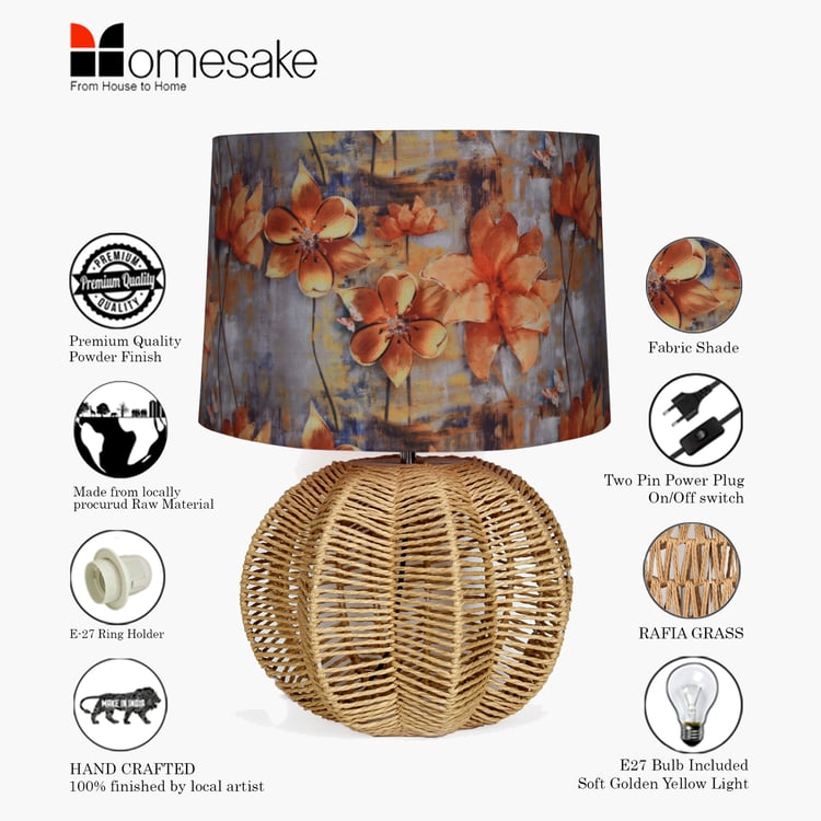 Bring charm and warmth to your home with this elegant table lamp, featuring a handwoven raffia grass circular base and a premium printed fabric shade. Equipped with a convenient E27 bulb holder and a simple two-pin plug with an on/off switch, it combines functionality with style.