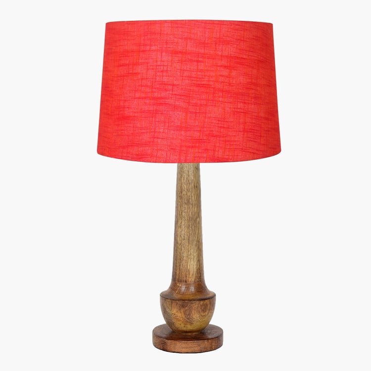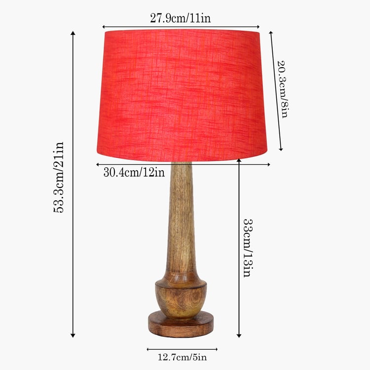 Crafted in a timeless classic style, this elegant table lamp brings a touch of natural beauty to any room. The sturdy wooden base, intricately detailed with a hand-carved design, is paired with a fabric shade that diffuses a warm, soothing glow. Perfect for your nightstand, side table, or beside the sofa and bed, it blends charm with functionality. Designed with an E27 bulb holder, it includes a warm bulb for instant use and a convenient two-pin plug with an on/off switch for easy operation.