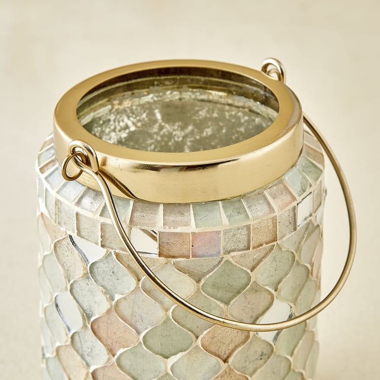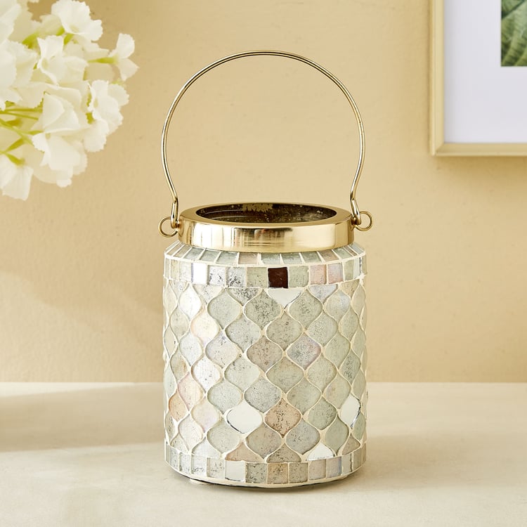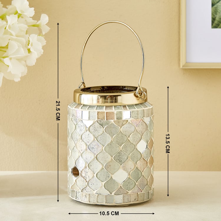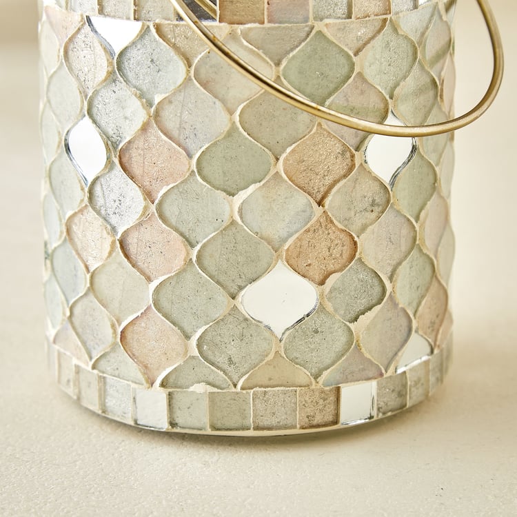 Bring a radiant charm to your decor with this handcrafted glass lantern. Its intricate mosaic patterns cast a warm, colourful glow, creating a captivating ambience for festive or everyday settings.