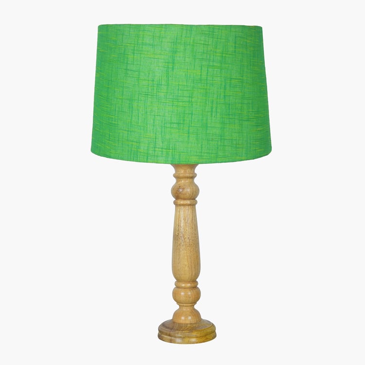 Crafted in a timeless classic style, this elegant table lamp brings a touch of natural beauty to any room. The sturdy wooden base, intricately detailed with a hand-carved design, is paired with a fabric shade that diffuses a warm, soothing glow. Perfect for your nightstand, side table, or beside the sofa and bed, it blends charm with functionality. Designed with an E27 bulb holder, it includes a warm bulb for instant use and a convenient two-pin plug with an on/off switch for easy operation.